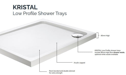 Original price From €195.00Original price €195.00€156.00Original price From €195.00From €156.00Current price €156.00The Sonas Kristal Low Profile Square Shower Tray offers a stylish and practical solution for modern bathrooms, combining a contemporary white finis...